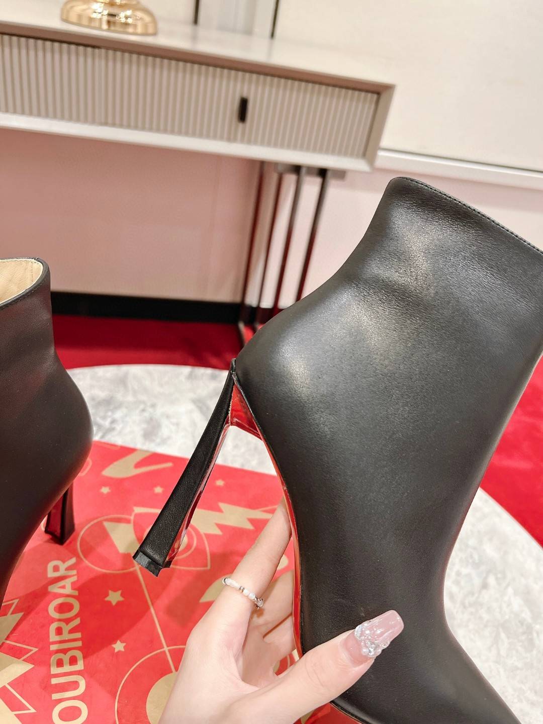 The timeless and elegant So Eleonor ankle boot highlights the foot with its sophisticated style. This black calfskin model features discreet tone-on-tone stitching. It sits on an iconic 85 mm cross heel and has a sober and refined allure. Its harmonious and refined aesthetic testifies to the expertise of Maison Christian Louboutin.