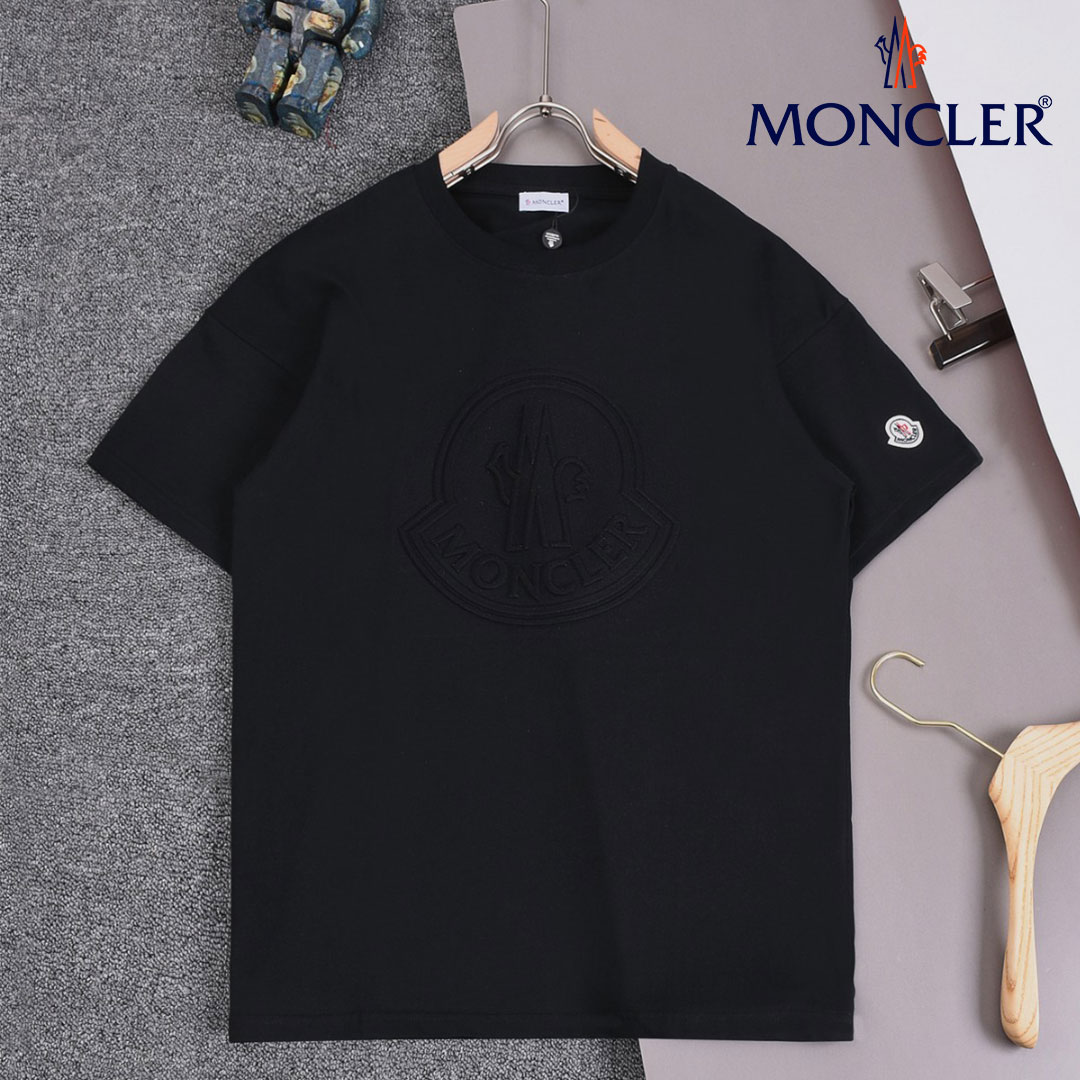【MONCLER】モンクレール エンボスロゴ カフ刺繍 プリント ラウンドネック 半袖 Tシャツ