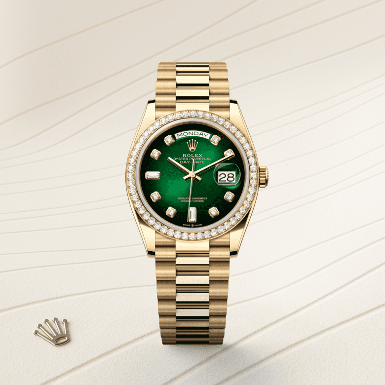 デイデイト 36 | オイスター、36 mm、イエローゴールド、ダイヤモンド リファレンス 128348RBR-0035